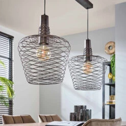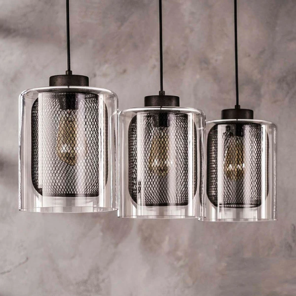 Een 3-lichts hanglamp met een raster van metaal om de lichtbron heen: het glas zorgt voor een design touch in het stoere geheel. Hierdoor past de hanglamp heel mooi in een modern-industrieel interieur met meubels van metaal en hout! Combineer bijvoorbeeld met een robuuste eettafel waaraan je design stoelen van leer schuift.