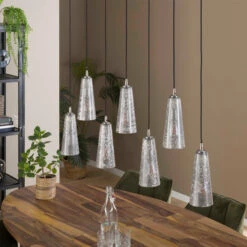 De 3-lichts hanglamp voorziet met een breedte van 100 centimeter je eettafel van veel licht. Maar je kunt de lamp ook heel leuk boven een dressoir of bar gebruiken! Kies voor ‘kooldraad look’ ledlampen om het vintage plaatje compleet te maken; deze gaan bovendien heel lang mee.