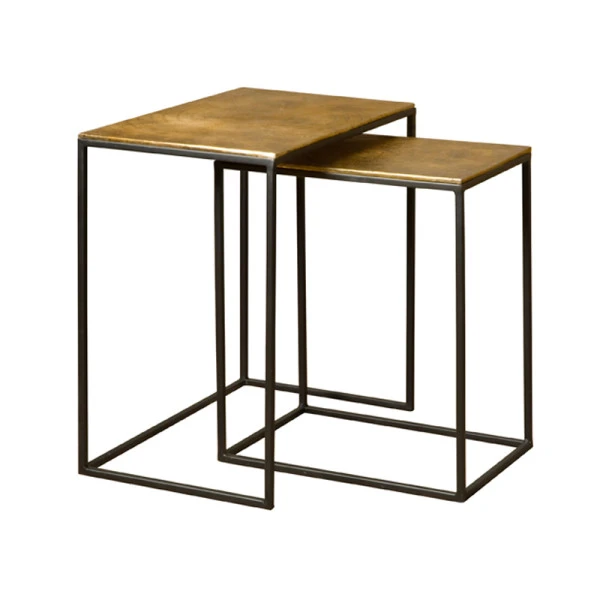 De Renew Iron Alu bijzettafelset kun je op verschillende manieren gebruiken. Schuif de kleinste tafel onder de grootste en zet de bijzettafelset bijvoorbeeld naast je favoriete fauteuil. Of verdeel de twee tafeltjes juist over de zithoek: een aan elke kant van de bank. De bladen van antiek messing geven de bijzettafelset een warme, chique uitstraling.