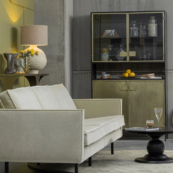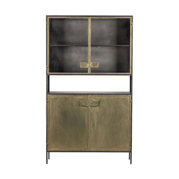 Gebruik de BePureHome Pack vitrinekast voor je mooiste serviesgoed, met alledaagse borden of pannen netjes weggeborgen achter de antique brass deuren. In het open vak is plaats voor een fruitschaal of een wijnfles in een standaard. Ook in de woonkamer komt de vitrinekast goed van pas: een stijlvol opbergmeubel voor kunst, wijnglazen, boeken en spelletjes onderin!