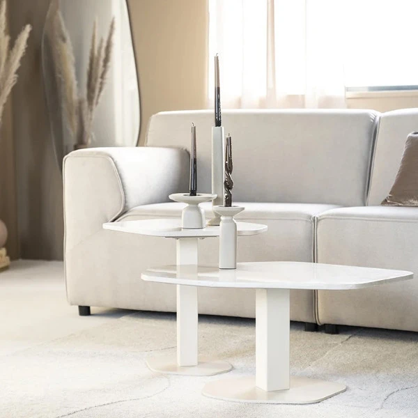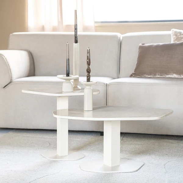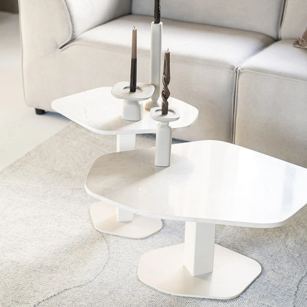 - Bijzettafel met asymmetrisch tafelblad en kolompoot