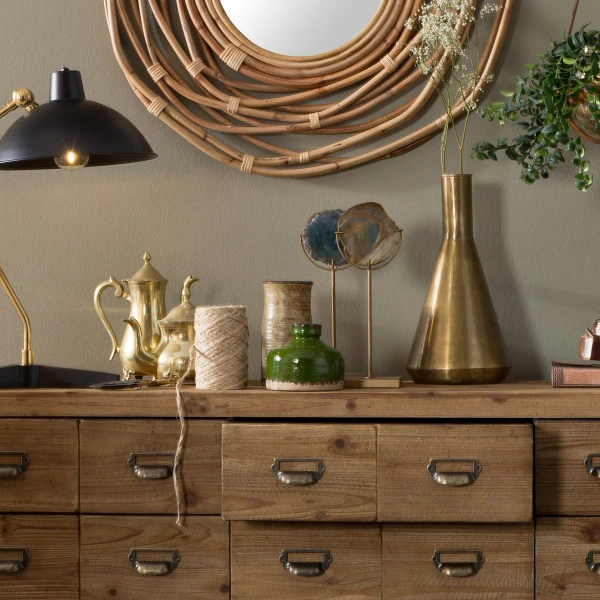 Van de Dutchbone Six ladekast knapt elk interieur op: de brede kast van vurenhout brengt veel, heel veel sfeer! Het vurenhout is voorzien van een antieke finish die perfect samengaat met de stalen handgrepen in vintage stijl. Aan de binnenkant zijn de 6 lades bekleed met textiel. Een gezellige en karaktervolle ladekast!