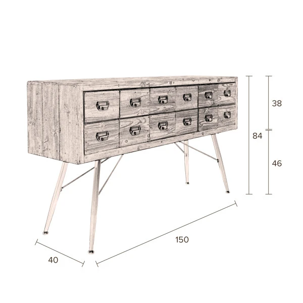 - Met 6 lades met ieder dubbele handgreep van staal met antiek finish