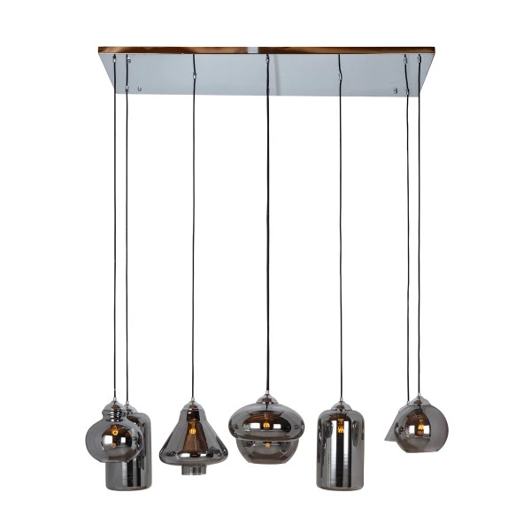 De Richmond Interiors Crosley hanglamp tovert je eethoek om tot een stijlvol decor voor gezellige diners! Acht lampenkappen van rookglas, elk in een andere vorm, geven deze eettafel hanglamp een uniek design. Daar kun je zelf nog mee spelen door de lampenkappen op verschillende hoogtes te hangen: elke kap van rookglas is apart in hoogte verstelbaar.