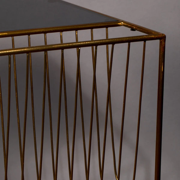 De glazen Dutchbone Eileen bijzettafel is voorzien van een handig opbergvak voor tijdschriften, kranten of boeken. Het charmante rek is verwerkt in het slanke frame van gepoedercoat ijzer met een warme, bronzen tint. Een blad van 5 mm dik, zwart gekleurd glas maakt de vintage look van de bijzettafel compleet!