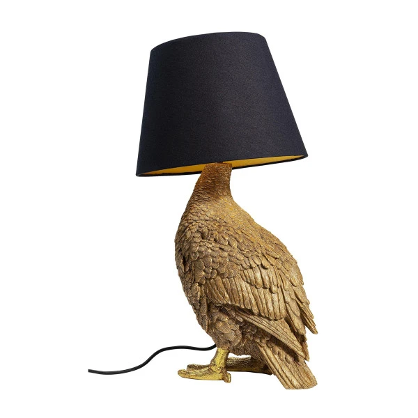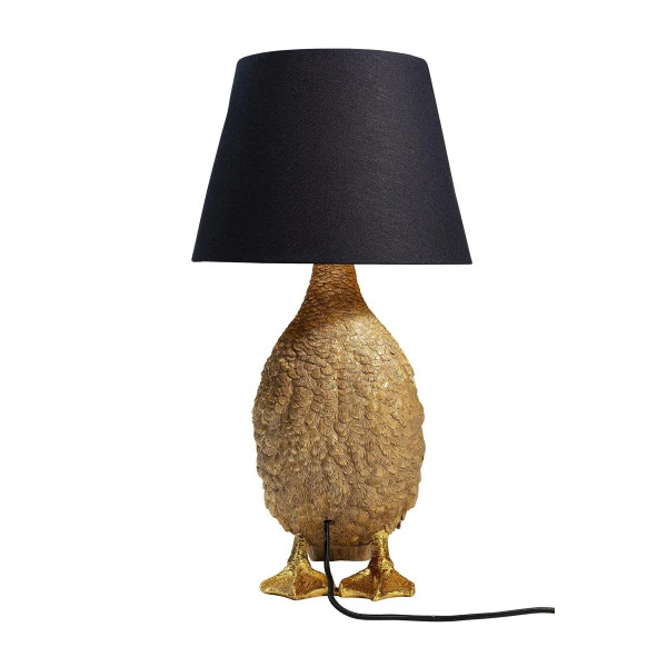 De Kare Design Duck tafellamp tovert elke dag opnieuw een glimlach op je gezicht. Je kunt je helemaal voorstellen dat deze gouden eend, zich bewust van zijn waarde, een verstopplek zocht onder de lampenkap! Zet de tafellamp op een mooi dressoir en geniet van het speelse design.