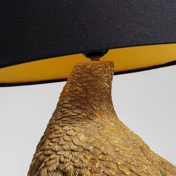 Bijzonder aan de Kare Design Duck tafellamp zijn bovendien de unieke details; de gouden eend is met de hand beschilderd en bewerkt. Dankzij de donkere kap van zwarte stof met een gouden binnenzijde krijgt het licht een warme tint. Je kunt veel leuke plekken bedenken voor deze grappige en mooie eend! Op het dressoir, een sidetable, een bijzettafel, je nachtkastje…