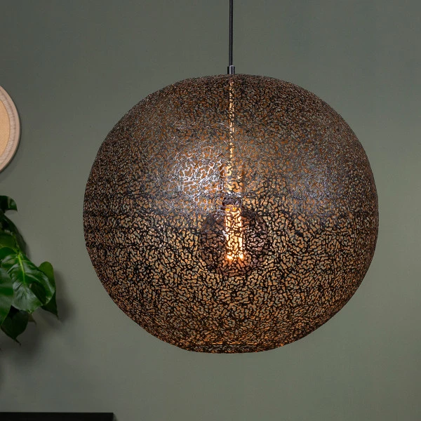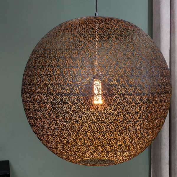 Deze grote ronde hanglamp van zwart gaas tovert je interieur om tot een sprookje. De kleine gaatjes in het metaal zorgen voor een bijzonder lichtschouwspel op je muur en plafond. Gebruik een kooldraadlook ledlamp om het licht een warme tint te geven! De ronde hanglamp van zwart gaas heeft een vintage uitstraling, en past daarom bijzonder mooi in een modern-industrieel interieur.