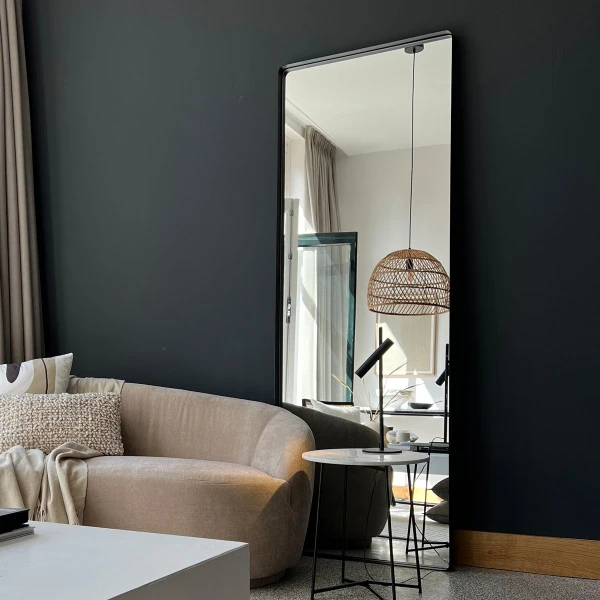 Dankzij de zwarte rand past deze spiegel in verschillende woonstijlen. Combineer met een industrieel interieur of hang de grote spiegel in een retro slaapkamer: de afgeronde hoeken geven al een beetje een retro look. Maar ook in een moderne woonstijl staat de spiegel mooi!