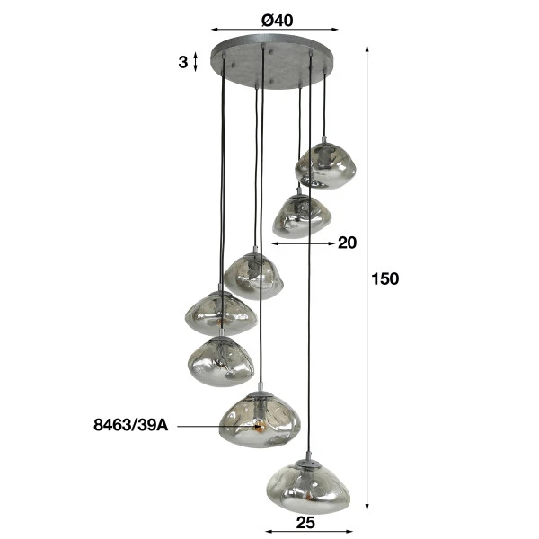 Hanglamp 7L glas met metaal