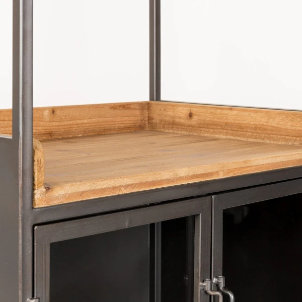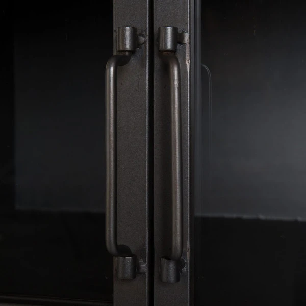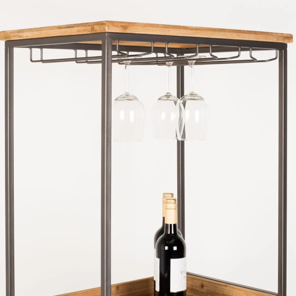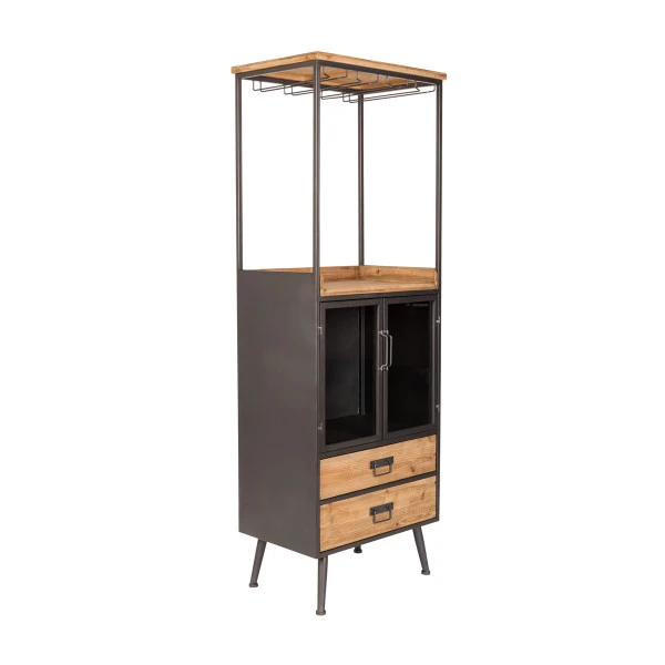 Een hoog wijnkabinet is niet alleen praktisch, maar staat ook heel gezellig in de eetkamer of woonkamer. In dit wijnkabinet hang je de glazen ondersteboven aan het ‘dak’, en is zowel achter de glazen deuren als in het open vak plaats voor wijnflessen of nog meer glazen. Openers en onderzetters berg je netjes weg in de twee lades. Een mooi, hoog wijnkabinet voor in een industrieel of modern interieur!
