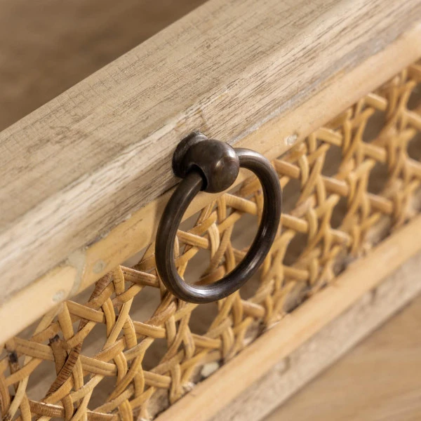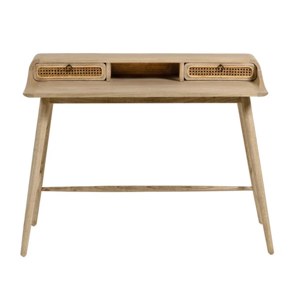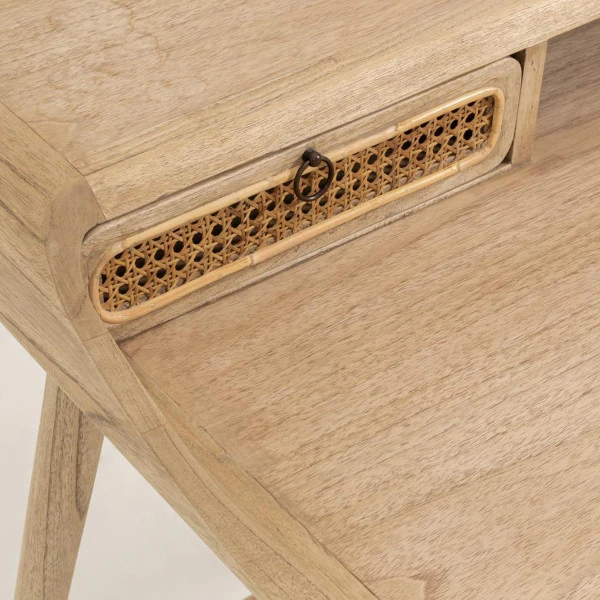 Met dit Kave Home Nalu bureau in huis is het bijna niet mogelijk om met stress te werken: het houten bureau met webbing creëert namelijk een ontspannen strandsfeertje! De rustieke beachhouse stijl staat veel gezelliger dan een kantoor- bureau. Berg kantoorartikelen netjes weg in de webbing lades en het open vak. Bovenop is nog plaats voor een lamp of plantje!
