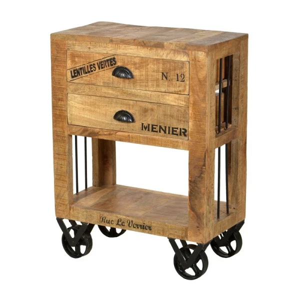 Dit gezellige ladenkastje staat te popelen om op zijn metalen wielen naar een mooie plek in de woonkamer te rijden. Het ruwe mangohout vormt een mooi contrast met de zwarte accenten, waardoor het kastje zowel in een landelijk als industrieel interieur past.