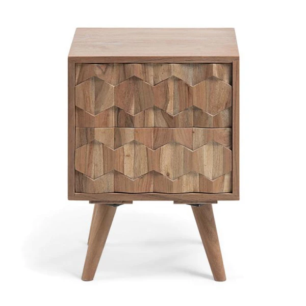 Dit Kave Home Khaleesi nachtkastje heeft een prachtig patroon in de houten ladefrontjes: als je daar lang genoeg naar kijkt hypnotiseert het nachtkastje je zó in slaap! Het massief acaciahout zorgt bovendien voor een warme sfeer in de slaapkamer. Het perfecte nachtkastje voor een ontspannen en gezellige slaapomgeving.