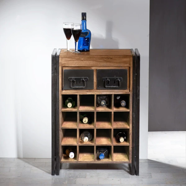 De Lavis Havel wijnkast is veel meer dan alleen praktisch: het meubel vormt een gezellige noot in je interieur! Deels omdat het industriële design met veel hout voor sfeer zorgt; en deels omdat de wijnkast een associatie oproept met fijne avondjes samen met je partner of vrienden! Behalve 16 vakken voor wijnflessen heeft de industriële wijnkast ook twee lades voor openers en onderzetters.