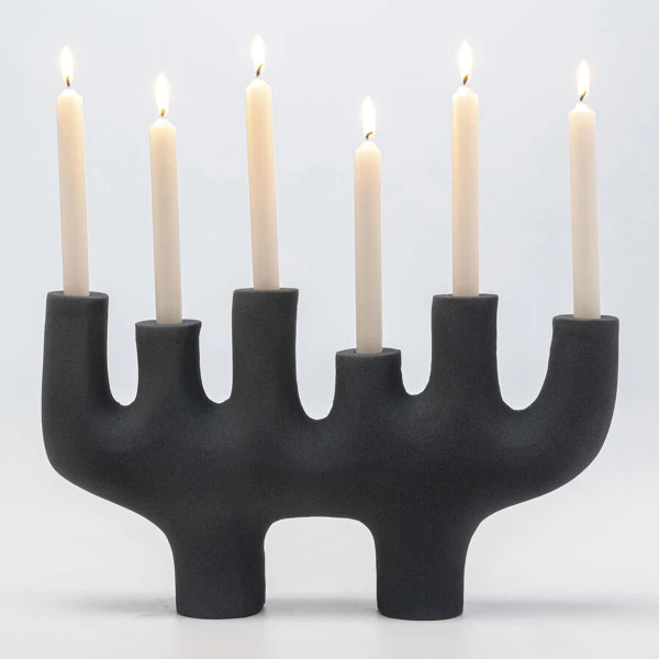 De Kare Design 6Sticker’s kaarsenhouder heeft een eigentijds design: gebaseerd op een klassiek model maar met een veel speelsere uitstraling! De kaarsenhouder is gemaakt van aluminium met een zwarte lak, en past daardoor op verschillende kleuren dressoirs. Met een breedte van 26 centimeter en ruimte voor 6 kaarsen is de kaarsenhouder een sfeervolle aanvulling op je interieur.