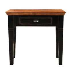 Deze sidetable van zwart gelakt mangohout zorgt voor een stoer accent in je landelijke interieur. Geschuurde hoeken en randen geven de sidetable een vintage sfeertje. Omdat de tafel slechts 35 centimeter diep steekt kun je deze heel goed gebruiken in de hal: voor een gezellige entree! Berg post of sleutels op in de lade en zet een mooie vaas bloemen op het blad van naturel gelakt mangohout.