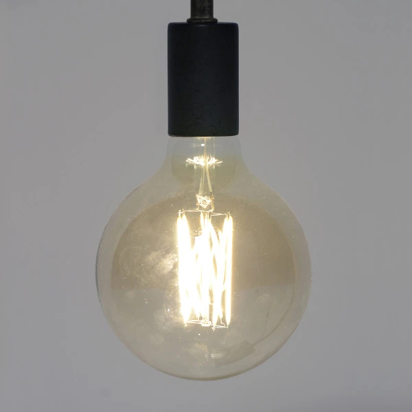 Deze LED filament lichtbron in de vorm van een bol heeft een diameter van 12,5 cm: een waardevolle toevoeging aan je lamp! Gebruik de dimbare LED bijvoorbeeld in een industriële hanglamp, tafellamp of vloerlamp met open design. De grote en sfeervolle bol met filament – een spiraalvormig gloeidraad- maakt je lamp extra bijzonder. Je hebt daarbij keuze uit amberkleurig glas of smoke grey glas: beide geven het licht een zachte tint.