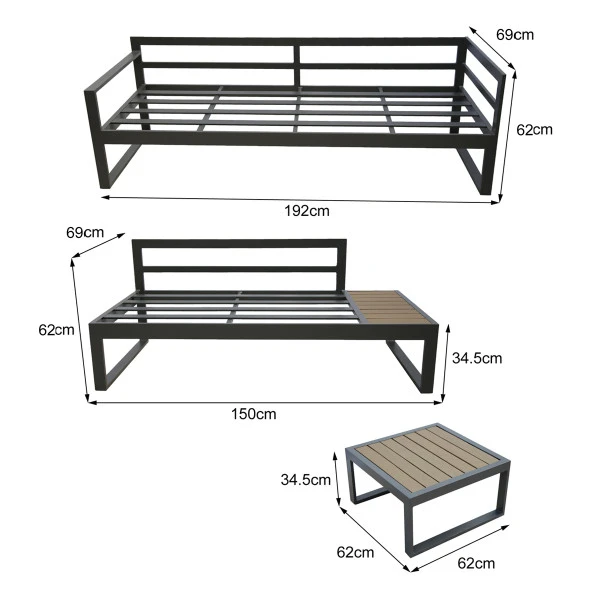 Loungeset tuin aluminium antraciet