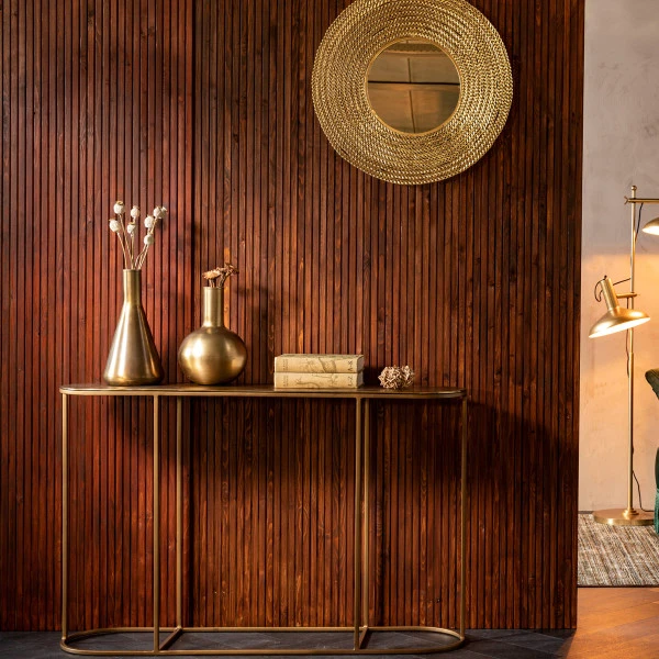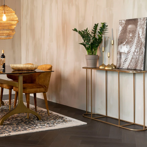 Je kunt de Dutchbone Zodiac sidetable gebruiken voor je mooiste decoraties: souvenirs van verre reizen bijvoorbeeld, of een vaas gedroogde bloemen met daarnaast dierbare foto’s. Omdat de messing sidetable met ovaal blad slechts 33 centimeter diep steekt neemt deze een zeer bescheiden plaats in huis in! Ideaal voor in de woonkamer, keuken of hal.
