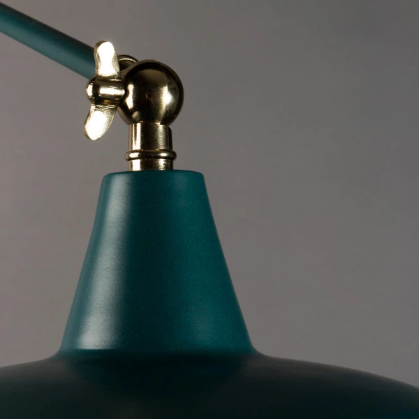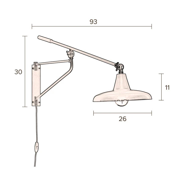 - Met scharnierarm van gepoedercoat ijzer met messing details