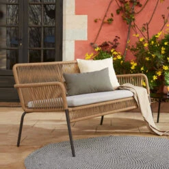 Met de Kave Home Samanta tuinbank kunnen die lente- en zomerdagen je niet lang genoeg duren. Dut lekker weg in de warme middagzon, of ga na de maaltijd nog even op de tuinbank zitten met een boek. De vogeltjes houden je gezelschap! De moderne tuinbank heeft een bohémien look dankzij de sfeervolle zitting van touw. Een waterdicht kussen maakt de comfortabele tuinbank compleet.