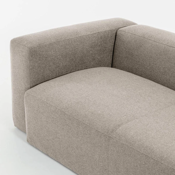 Je herkent de Kave Home Blok serie aan de rechte vormen, die zacht worden dankzij de dikke kussens van stof. Behalve deze hoekbank vind je in de serie ook een moderne 2- of 3-zitsbank. Maak het geheel af met een bijpassende hocker!