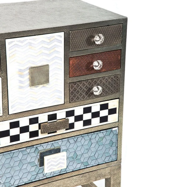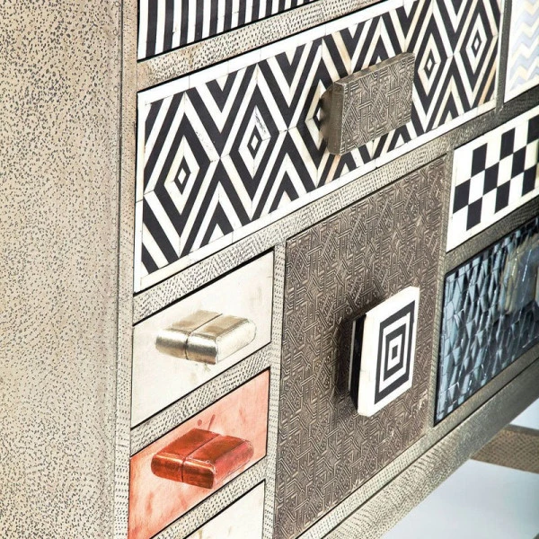 Het Kare Design Chalet 14 dressoir heeft zoveel kleur en karakter dat je er naar blíjft kijken! De 14 lades zijn voorzien van uiteenlopende patronen en design handgrepen die voor een retro look zorgen. Ook de vintage afwerking van de metalen ombouw draagt bij aan het jaren ‘50 geheel. En met zoveel lades in één dressoir heb je voortaan voor elk type rommeltje een vaste opbergplaats!