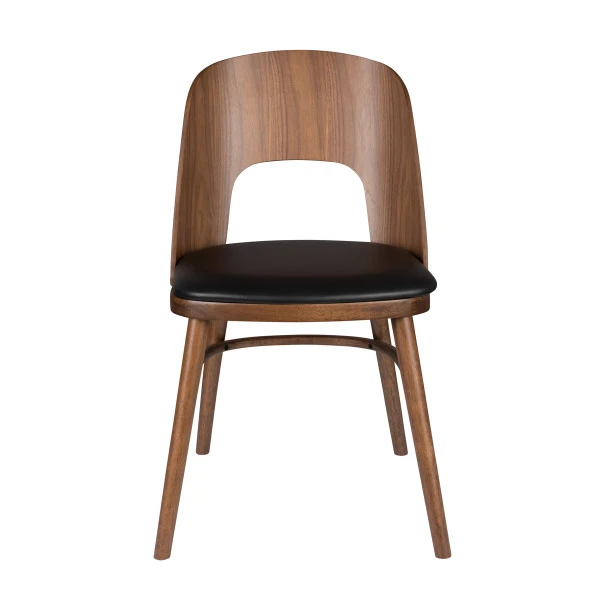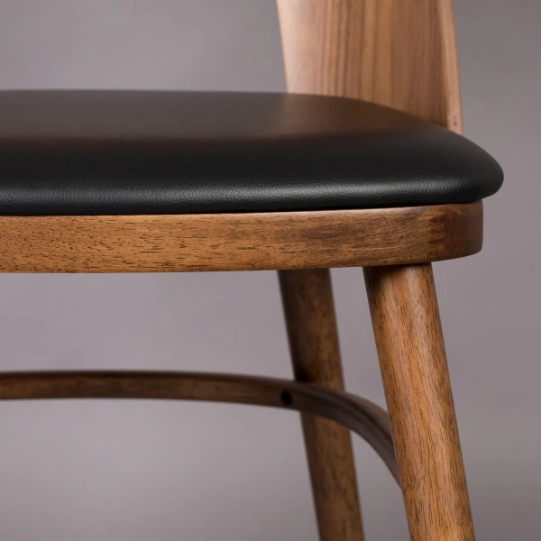 De Dutchbone Talika eetkamerstoel heeft een gezellige, retro uitstraling. Dat komt niet alleen door de ronde vormen van de eetkamerstoel; ook de mix van walnoot fineer en kunstleer draagt bij aan de retro look! Het design is elegant zodat je de stoel ook heel goed aan een bureautje of sidetable in de woonkamer kunt aanschuiven.