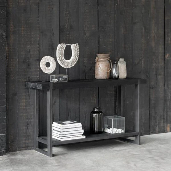 De DTP Home Beam Black sidetable vormt een stoere, sfeervolle verschijning in je interieur. De robuuste balken van gerecycled zwart teak zitten vol karakter! De uiteindes van de balken zijn speels afgewerkt, zodat de zijdes van de sidetable een design tintje krijgen. Met een diepte van 40 centimeter past de robuuste sidetable van zwart teak ook in een krappe hal. Of gebruik in de woonkamer voor decoraties en boeken!
