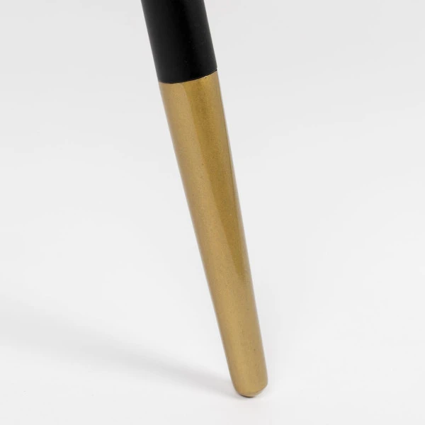 - 3 uitstaande zwarte ijzeren poten met goudkleurige voet