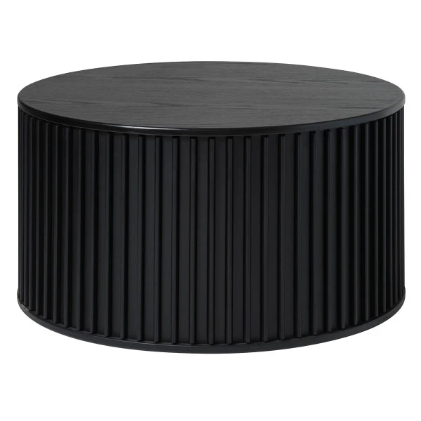Net als deze ronde salontafel zijn de andere meubels uit de serie gemaakt van zwart eikenfineer met een stijlvol en toch speels design. De ronde vormen en stroken hout zorgen voor een retro tintje. Kijk gauw verder voor een bijpassend dressoir of een zwarte wandkast.
