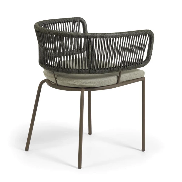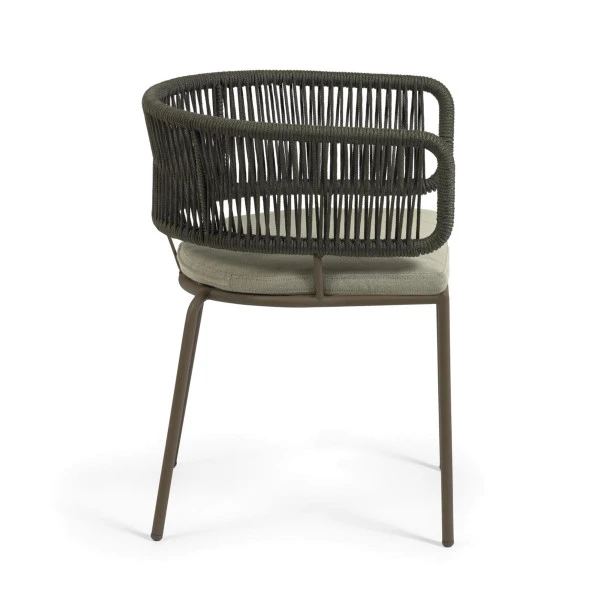 De Kave Home Nadin eetstoel combineert design met comfort. De moderne lijn krijgt bovendien een gezellig karakter dankzij het touw en kussen! Zo maakt de eetstoel je terras mooi en sfeervol, en kun je heel wat zomeravonden genieten van een luxe maaltijd in de buitenlucht. De eetstoel van touw is verkrijgbaar in oranje en groen!
