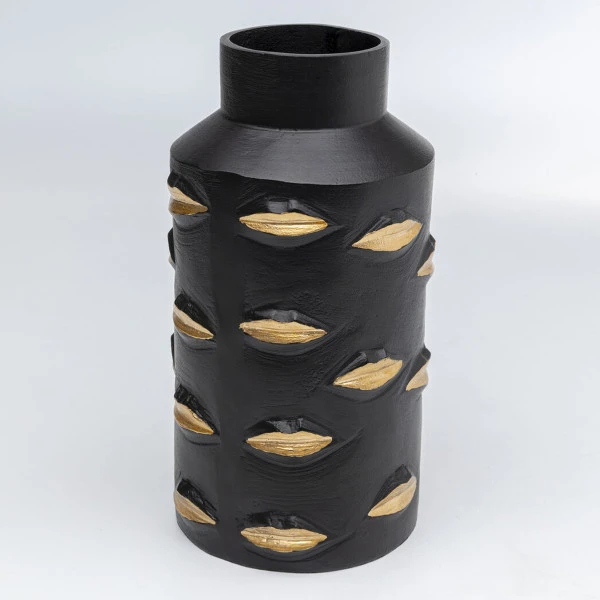 De Kare Design Golden Lips vaas vormt een bijzondere decoratie in je interieur. Gouden lippen versieren de zwarte vaas en fluisteren je gasten toe: ‘kom dichterbij, dan vertellen we je de geheimen van dit huis…’ Een unieke vaas voor op het dressoir, een zuil of midden op de eettafel.