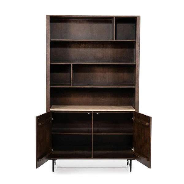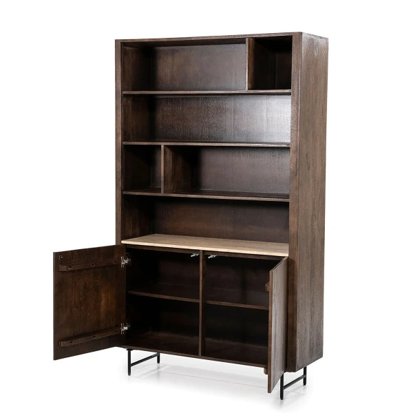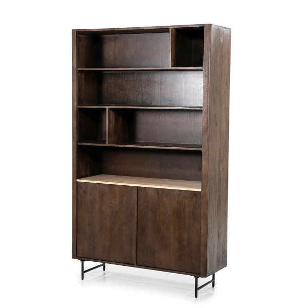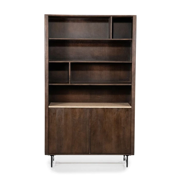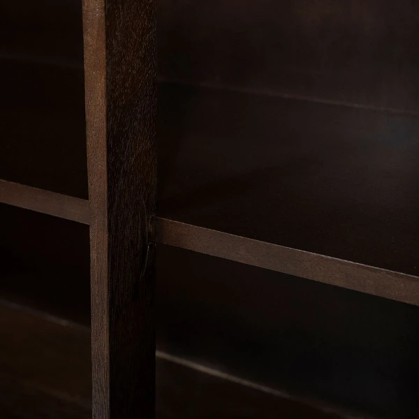 - Vakkenkast met warme tinten en natuurlijke materialen