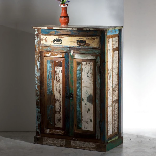 In deze wandkast van gerecycled sloophout is plaats voor ongeveer 20 paar schoenen! Maar je kunt de wandkast natuurlijk ook voor andere spullen gebruiken, zoals hobbymaterialen of speelgoed. De grote lade biedt ook nog plaats aan rommeltjes die anders maar in je hal zouden rondzwerven. En het gerecycled sloophout zit boordevol kleur en details: daar raak je niet zomaar op uitgekeken!