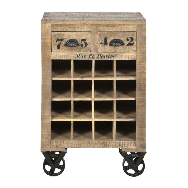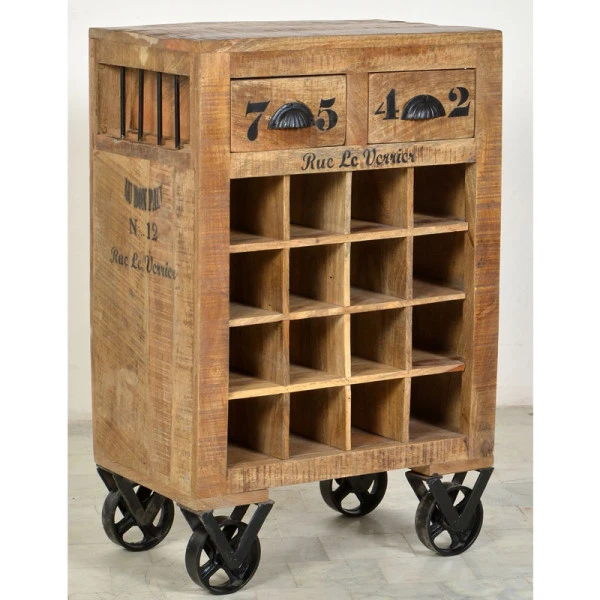 Wijnrek met tekst op wielen