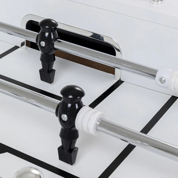 De Kare Design Soccer Table Style tafelvoetbal tafel heeft een design zo stijlvol dat je partner geen bezwaar meer kan maken; deze tafel gaat perfect op in je moderne interieur! Dankzij de witte afwerking neemt de tafelvoetbal tafel bovendien een bescheiden plaats in. Wie zegt dat je een aparte kamer nodig hebt voor ‘games’? Deze zet je natuurlijk in de woonkamer!
