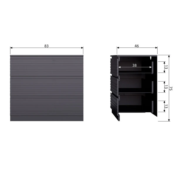 - Binnenruimte per lade: 15x76x38 cm (hxbxd)