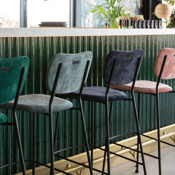 De hoge Zuiver Benson barkruk is ideaal voor lange mensen, of voor als je bartafel een beetje hoger dan gemiddeld is! Bovendien ziet je heerlijk comfortabel op deze barkruk met rugleuning, voetensteun en een zitting van stof. Daarbij heb je keuze uit verschillende kleuren: okergeel, grijsblauw, donkerblauw, roze en groen. Kies je favoriet of combineer twee kleuren voor een speels effect!