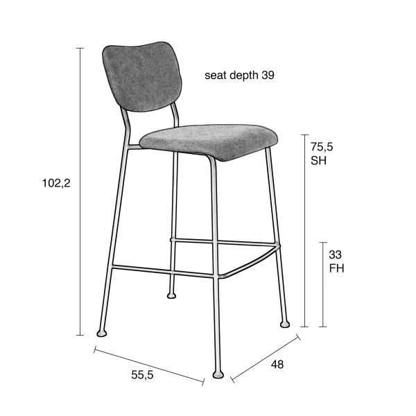 De zitmeubelen uit de Zuiver Benson serie hebben een elegant, slank frame. Mooi in een modern, modern-industrieel of retro interieur! Past de lage barkruk niet aan jouw bartafel? In de serie kun je ook terecht voor een hoge variant met een zitting van stof.