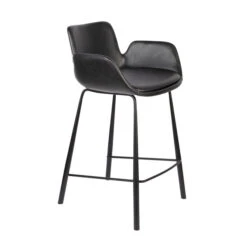 Kenmerkend voor de Zuiver Brit serie is het elegante design met armleuningen in de vorm van vleugels. Slanke, speelse poten van zwart gepoedercoat metaal maken de meubels compleet. Behalve deze leren barstoel vind je in de serie ook een fluwelen barstoel én bijpassende eetkamerstoelen.