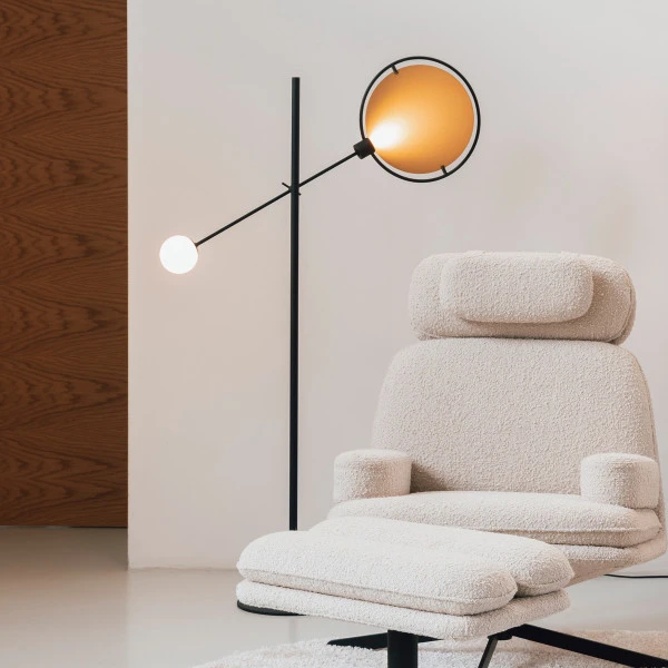 In de Zuiver Sirius serie vind je nog meer varianten van deze unieke lamp. Combineer de vloerlamp met een wandlamp om bij te lezen en maak je woonkamer compleet met een hanglamp! De gouden schijf geeft het licht een zachte en warme tint.
