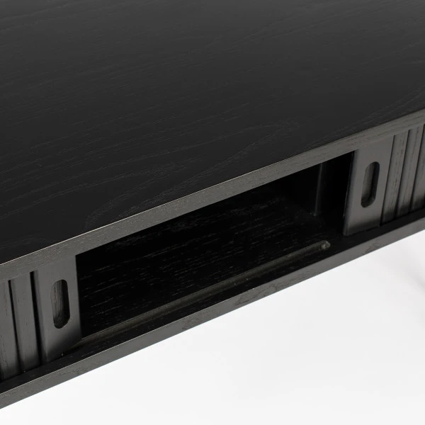- Zijkanten, vakken en uitschuifbaar blad van mdf met zwart eiken fineer